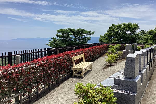 南向きで相模湾のが一望できる開放的な区画です。隣り合うお墓との間に20cmの空間を持たせた、お手入れもしやすいお墓です。
